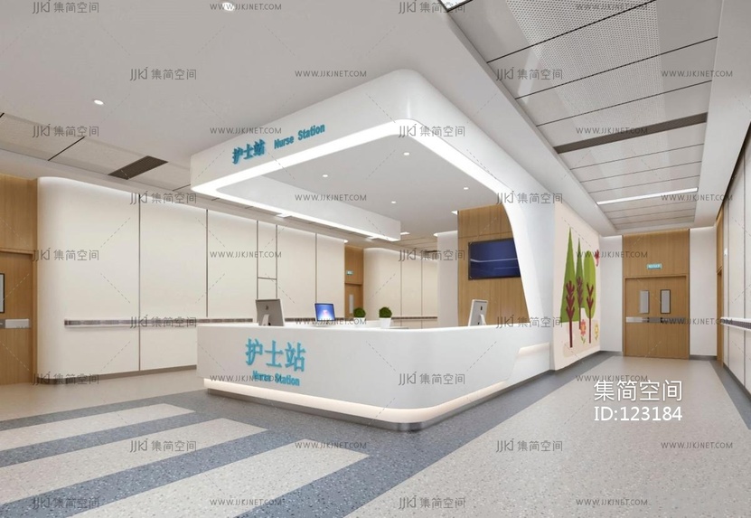 现代医院护士站走廊 3d模型下载 [模型ID:123184]