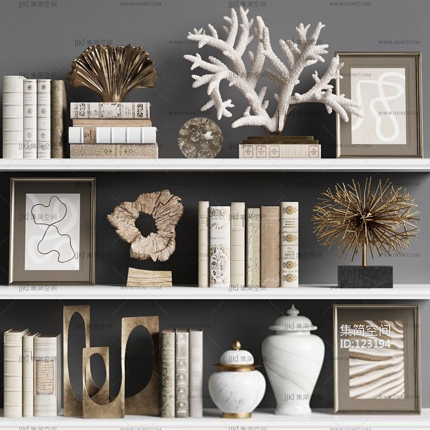 现代装饰品摆件_书籍_花瓶3D模型3d模型下载