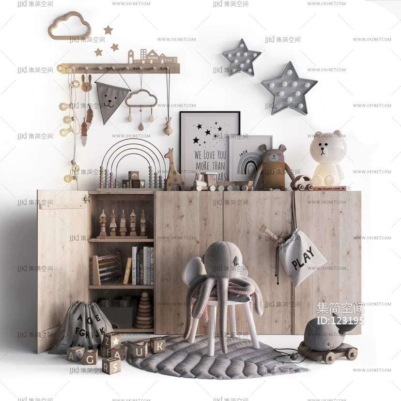 现代儿童装饰摆件挂饰挂件玩具玩偶组合 3d模型下载 [模型ID:123195]