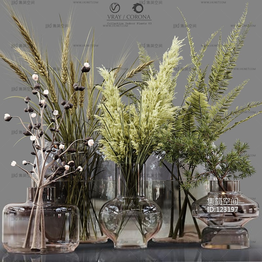 现代花束玻璃花瓶装饰品组合 3d模型下载 [模型ID:123197]
