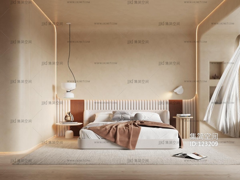 奶油风,卧室双人床 3d模型下载 [模型ID:123209]