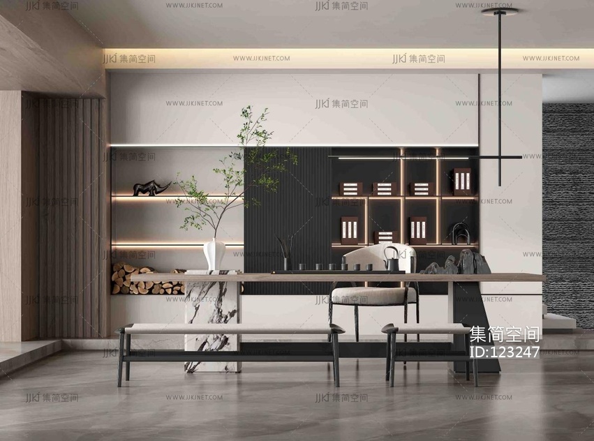 现代茶室书房,茶桌椅,茶台 su草图模型下载 [模型ID:123247]