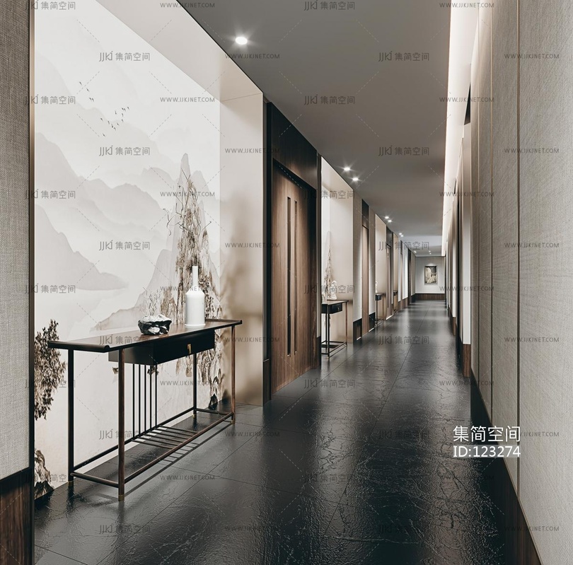 新中式走道,走廊 3d模型下载 [模型ID:123274]