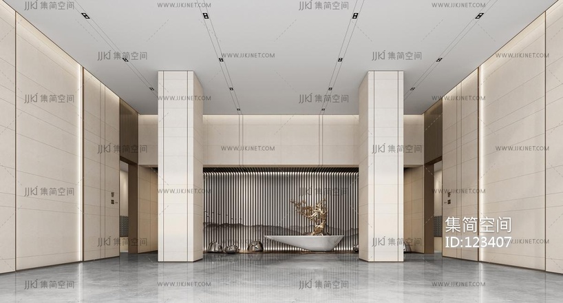 新中式办公大堂,门厅 3d模型下载 [模型ID:123407]
