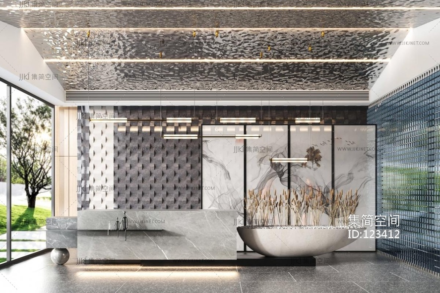 现代大厅前台接待台 3d模型下载 [模型ID:123412]