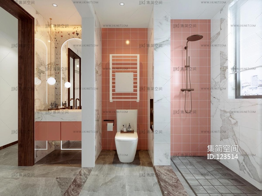 法式奶油风卫生间_洗手盆_马桶抽纸盒花瓶3D模型3d模型下载