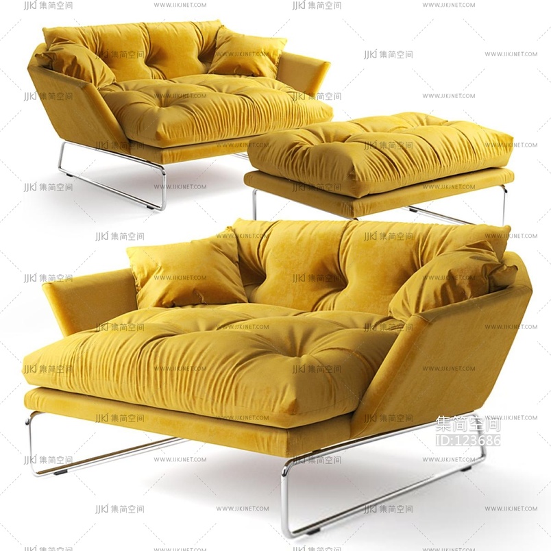 现代单人沙发脚凳 3d模型下载 [模型ID:123686]