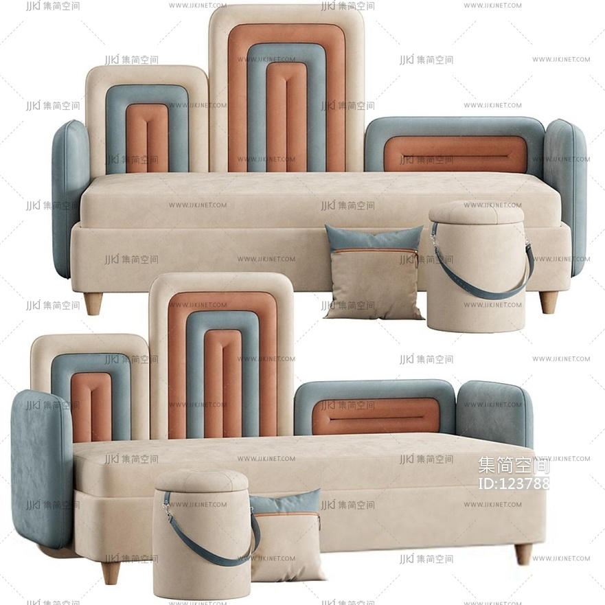 现代沙发三人沙发拼接沙发3D模型3d模型下载