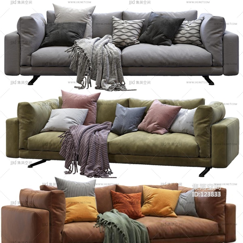 现代沙发三人沙发拼接沙发3D模型3d模型下载