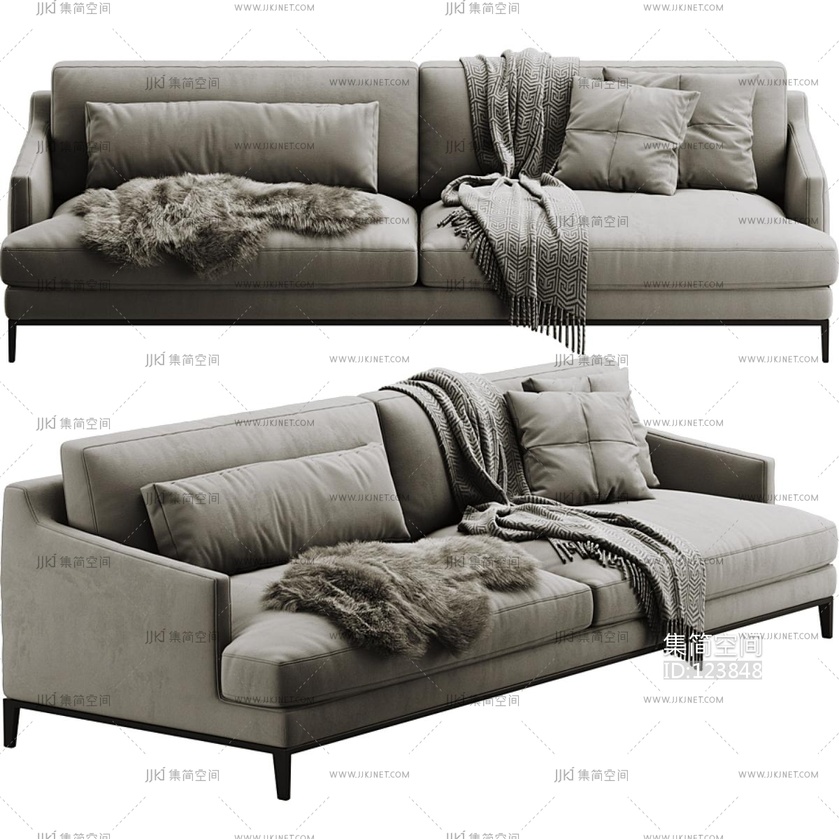 现代布艺双人沙发 3d模型下载 [模型ID:123848]