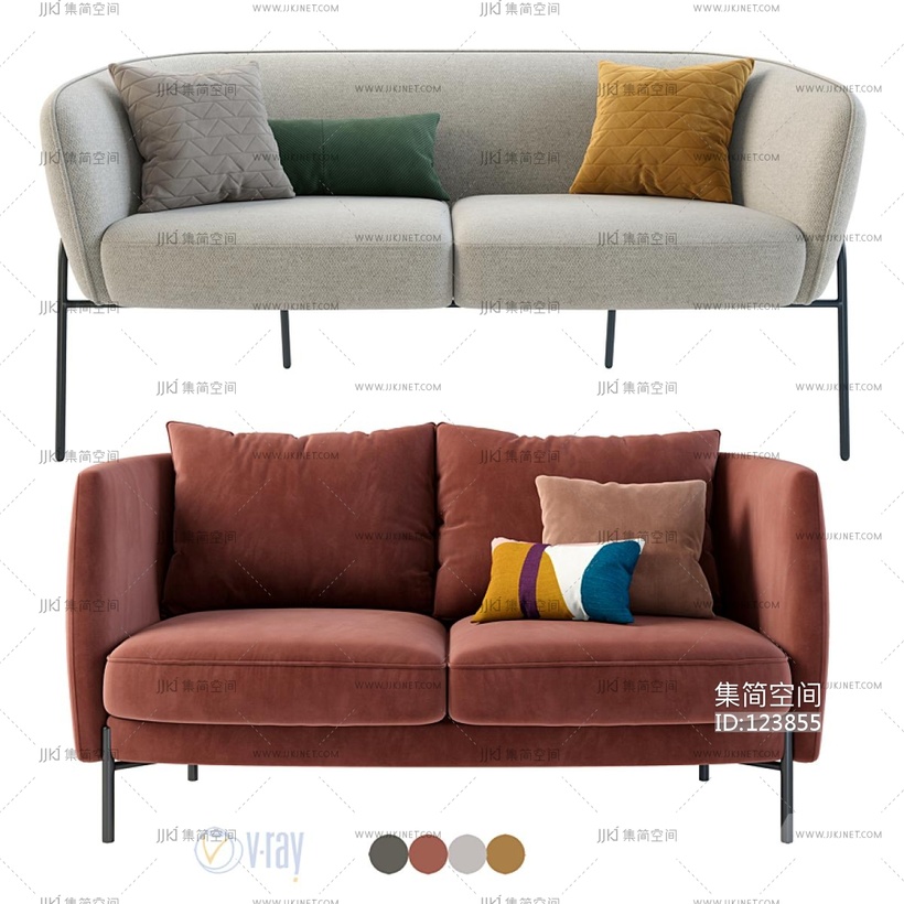 现代布艺双人沙发 3d模型下载 [模型ID:123855]