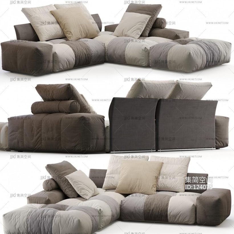 现代沙发三人沙发拼接沙发3D模型3d模型下载