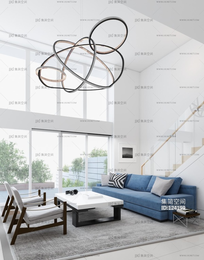 现代北欧风格loft客厅 3d模型下载 [模型ID:124199]