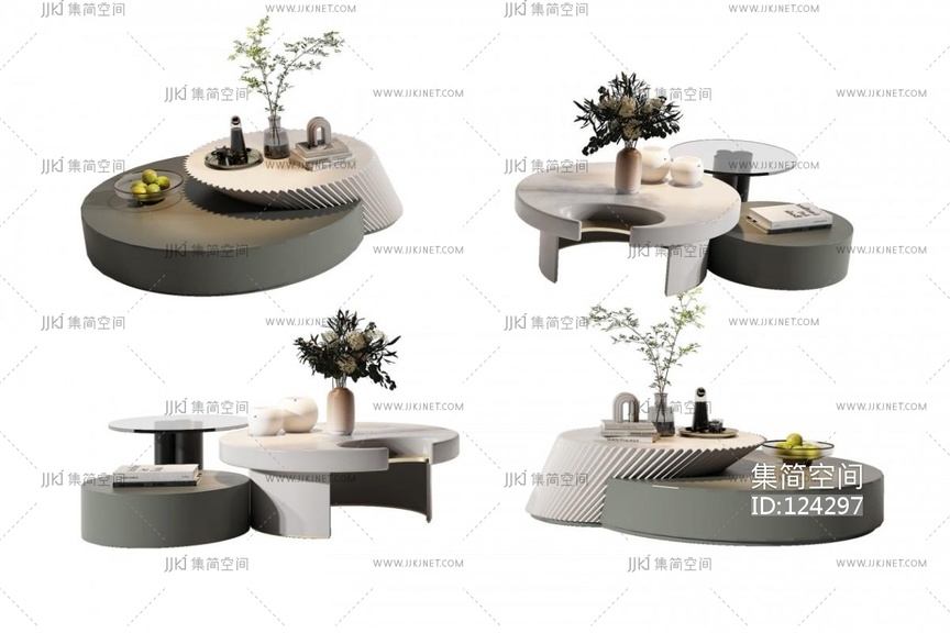 现代圆形茶几 3d模型下载 [模型ID:124297]
