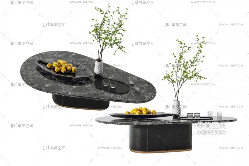 13-现代茶几圆形茶几果盘国际象棋3D模型3d模型下载