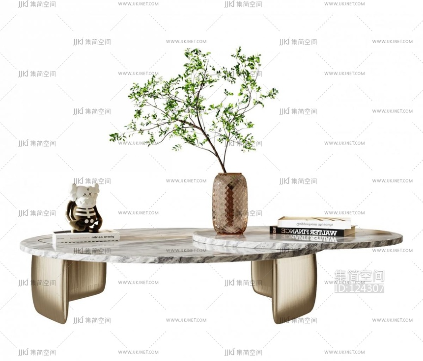 现代茶几书籍玻璃花瓶 3d模型下载 [模型ID:124307]