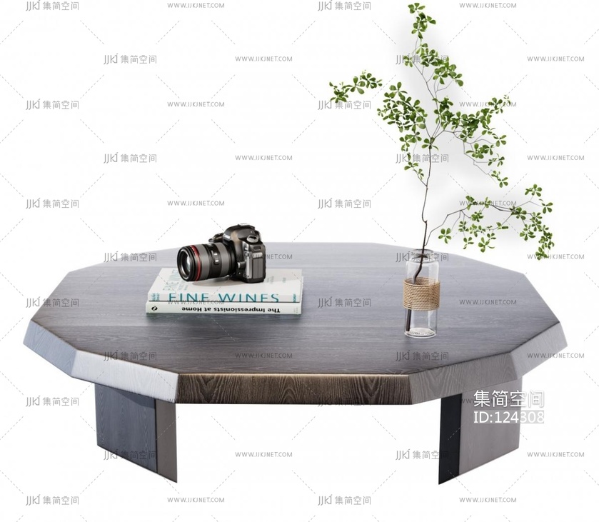 14-现代金属茶几,圆形茶几书本,花瓶摆件3d模型下载