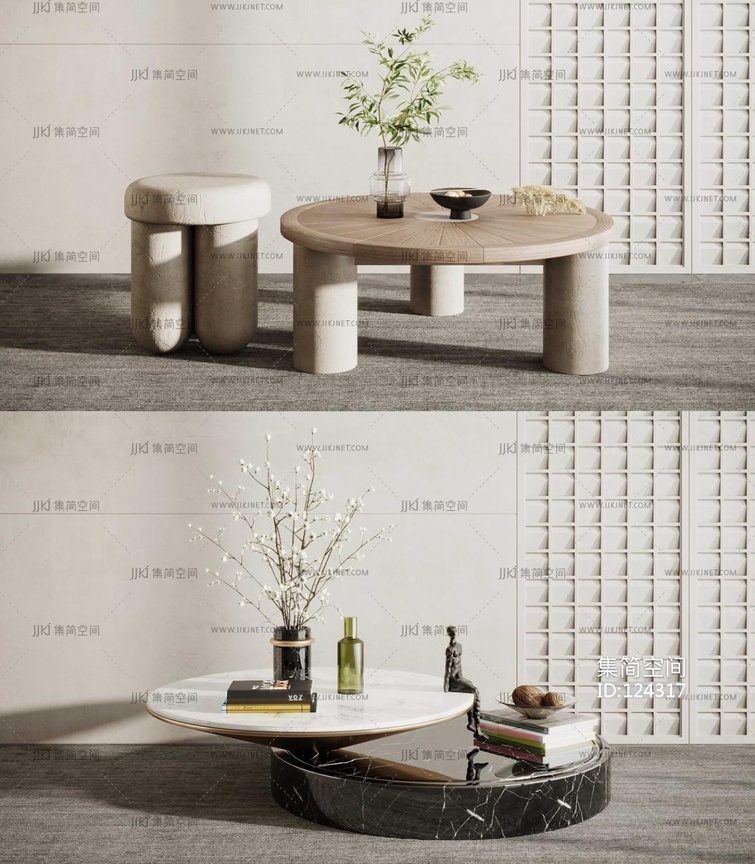 现代圆形茶几组合 3d模型下载 [模型ID:124317]