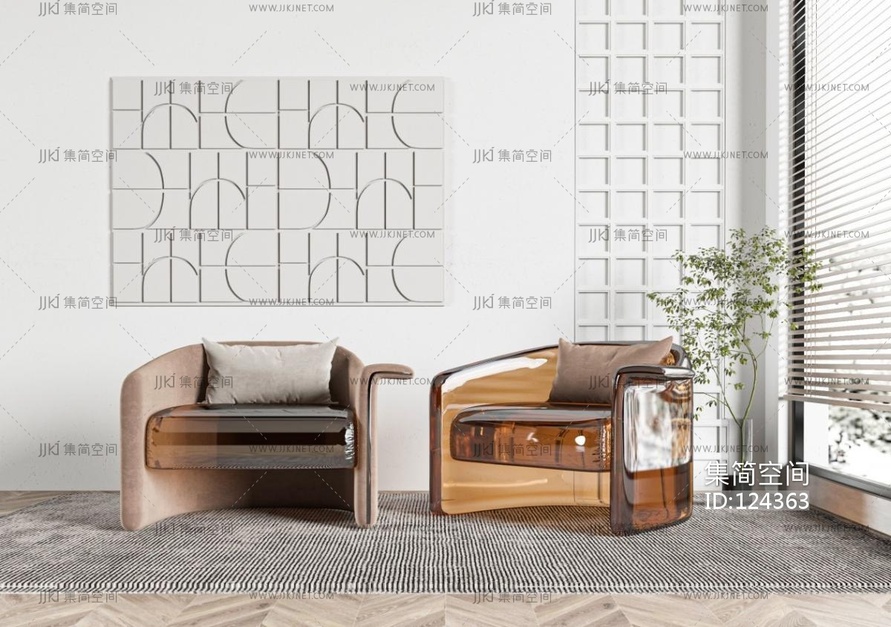 现代皮质单椅,茶几 3d模型下载 [模型ID:124363]