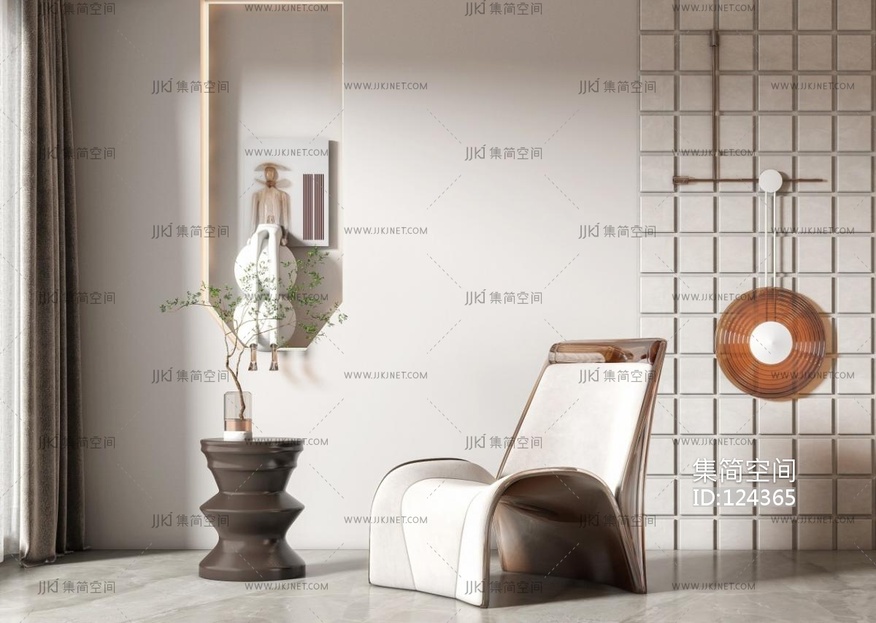 现代单椅休闲椅茶几组合 3d模型下载 [模型ID:124365]