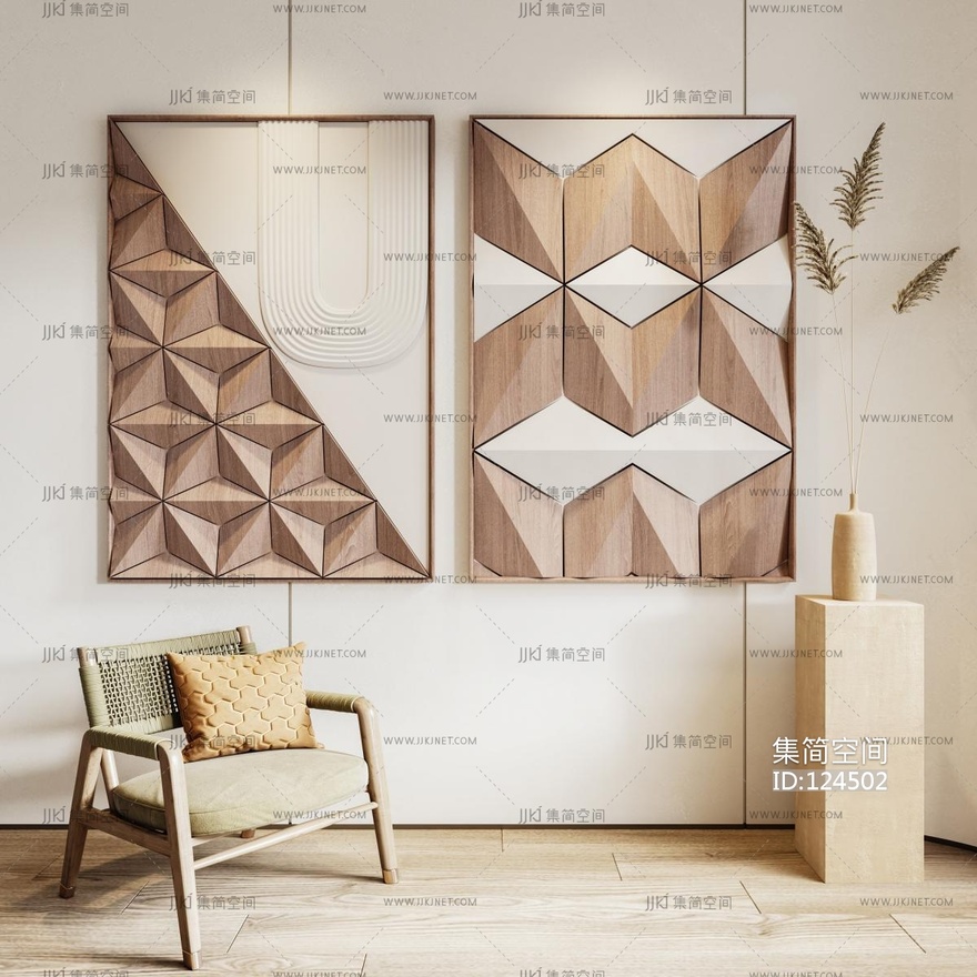 现代休闲椅 装饰画,立体画 3d模型下载 [模型ID:124502]
