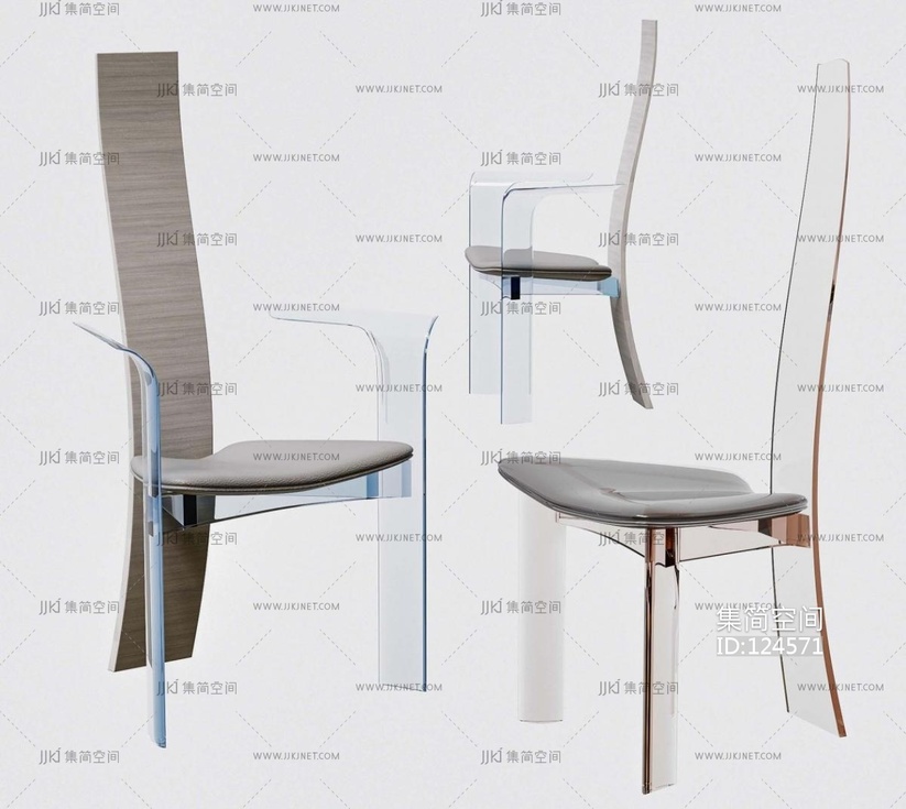 现代亚克力透明椅子 3d模型下载 [模型ID:124571]