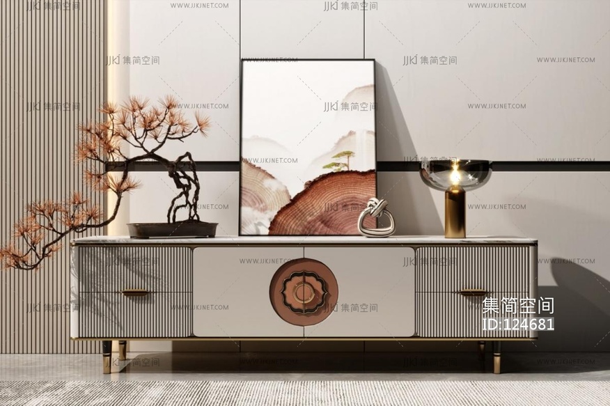 新中式电视柜 3d模型下载 [模型ID:124681]
