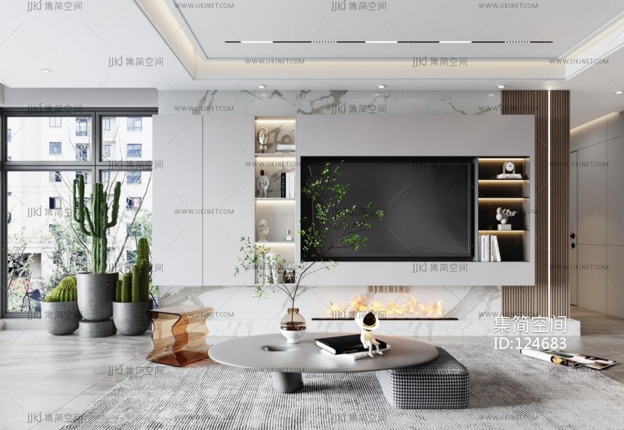 现代客厅,电视背景墙 3d模型下载 [模型ID:124683]
