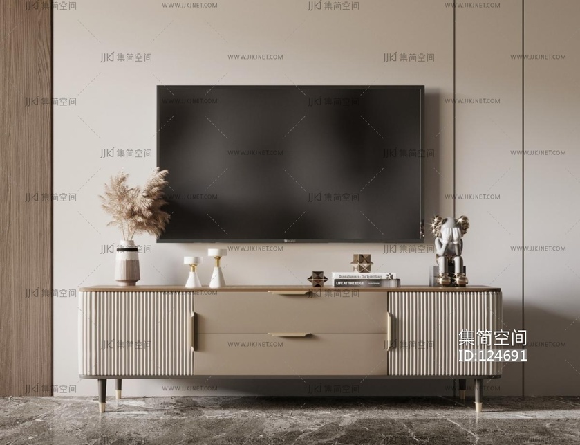现代电视背景墙,满墙电视柜,电视机,储物柜,饰品摆件3D模型3d模型下载