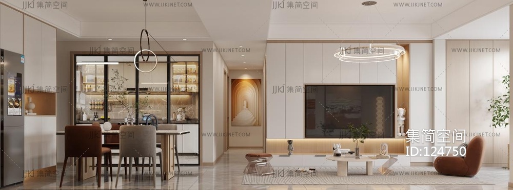 20-现代客餐厅厅,餐桌椅沙发 (1) 3d模型下载 [模型ID:124750]