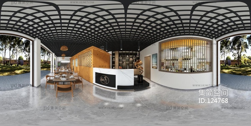 Z04-0702新中式餐厅门头入口酒罐子月亮门迎客松景观3d模型下载