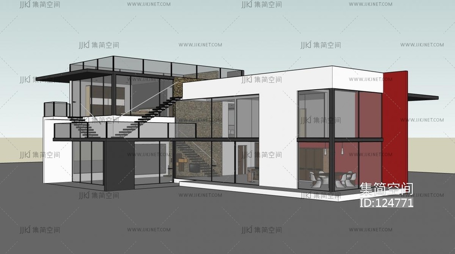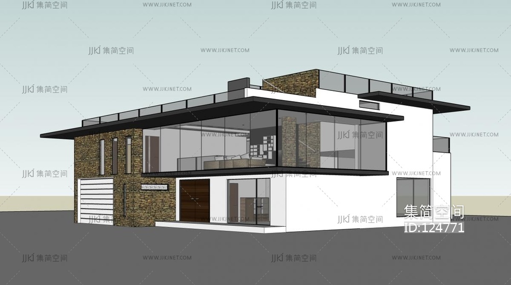 03-现代风格别墅 su草图模型下载 [模型ID:124771]