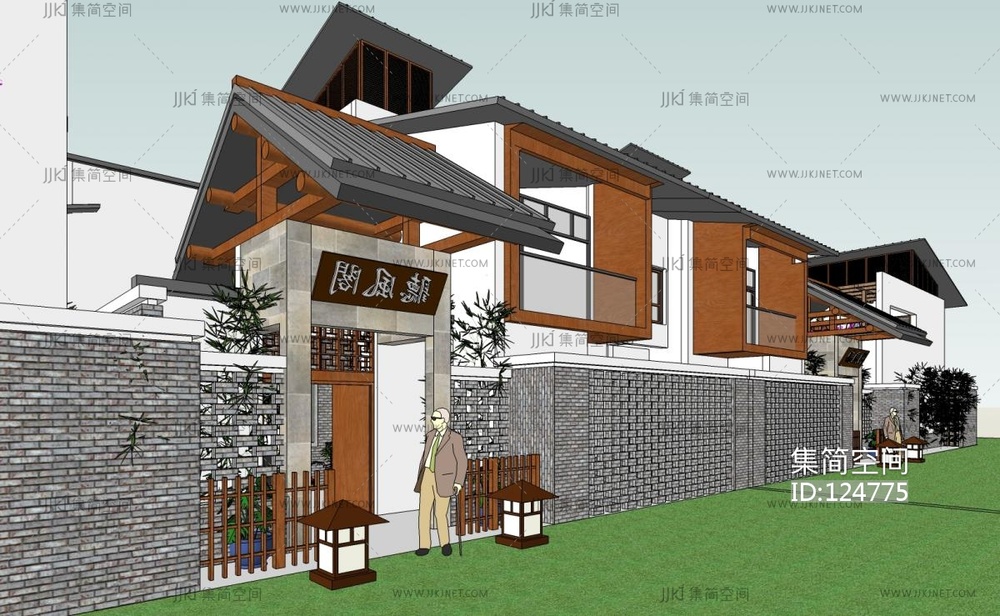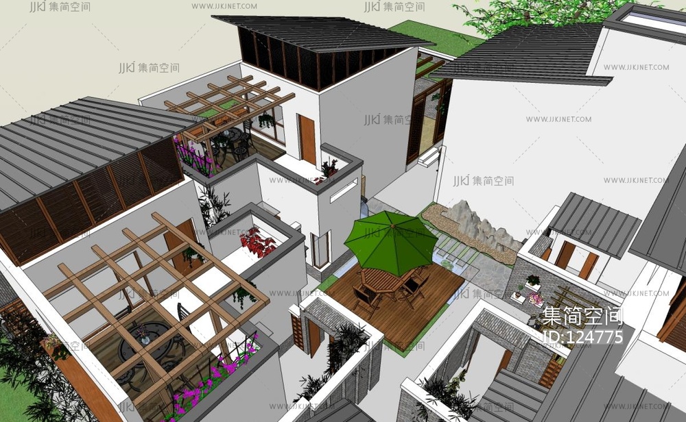 中式合院别墅 su草图模型下载 [模型ID:124775]