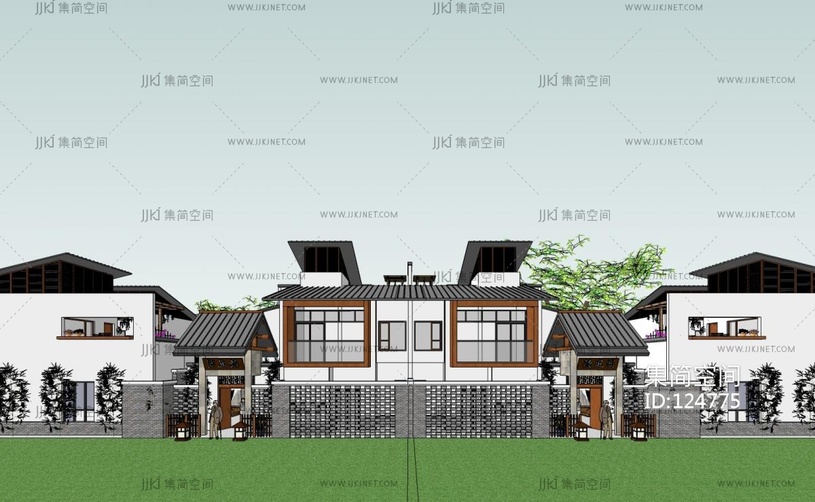 中式合院别墅 su草图模型下载