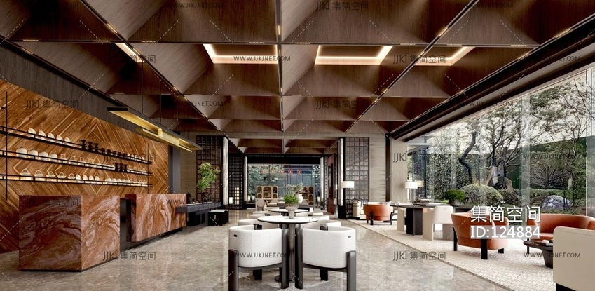 新中式售楼处入口大堂服务太接待台3D模型3d模型下载