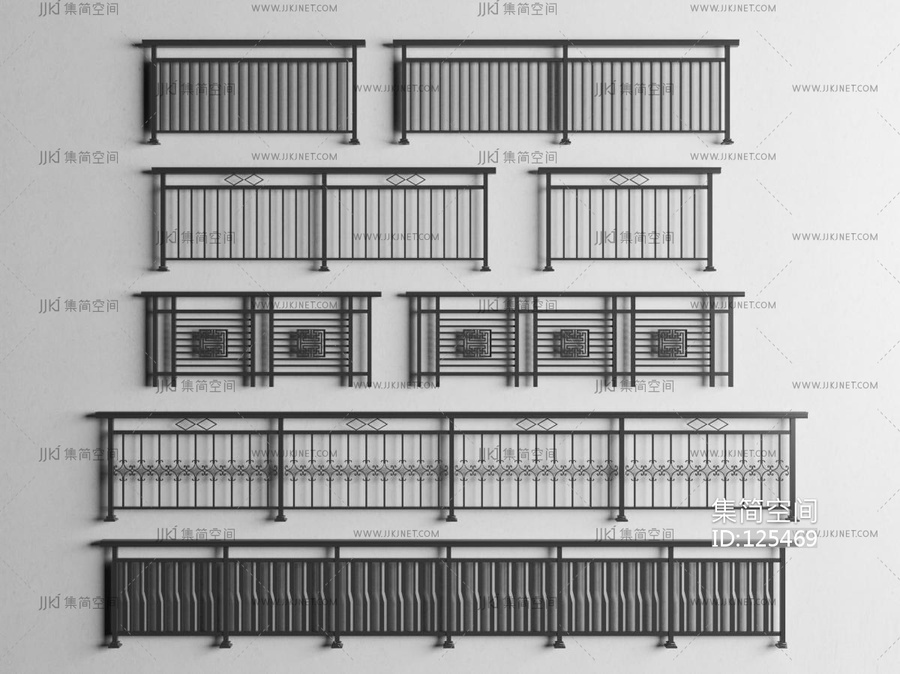 现代新中式铁艺栏杆防护栏 3d模型下载 [模型ID:125469]