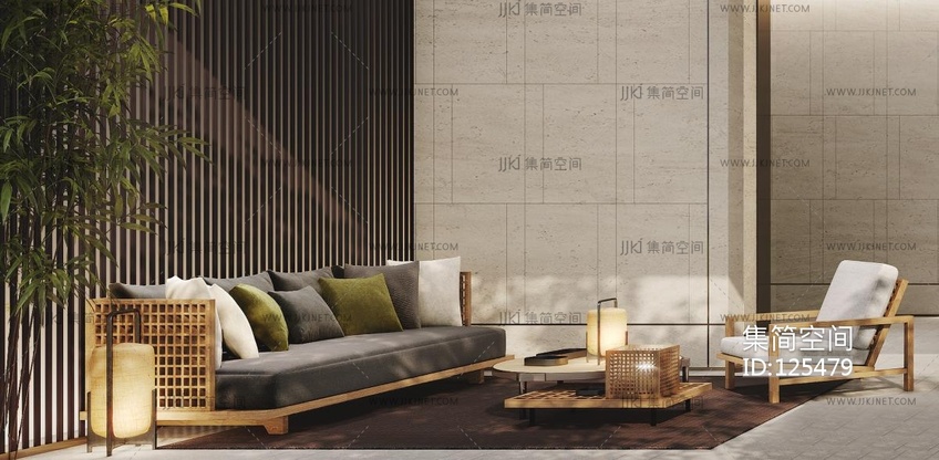 新中式竹椅_户外休闲椅3D模型3d模型下载