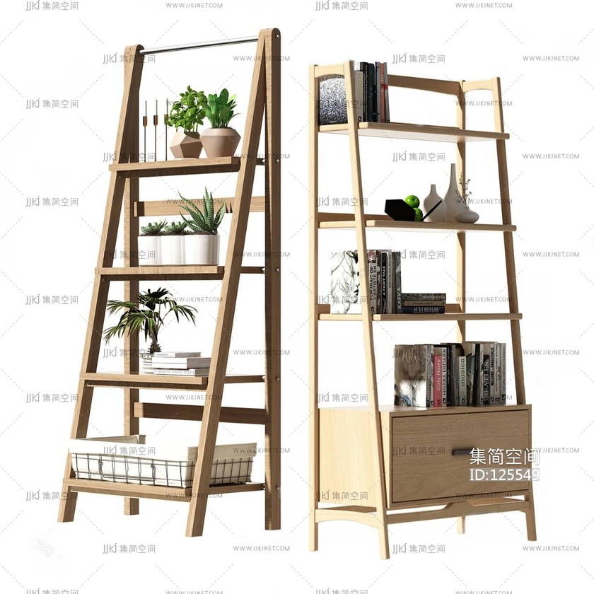 北欧实木书架装饰架摆件 3d模型下载 [模型ID:125549]