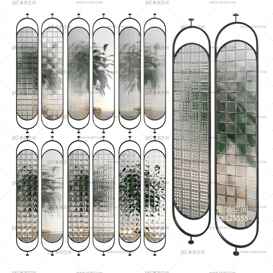 现代金属玻璃屏风隔断 3d模型下载 [模型ID:125555]