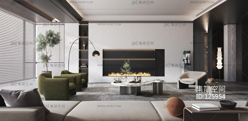中古风客厅,美式客厅,圆形茶几,装饰画,移动电视,3d模型下载