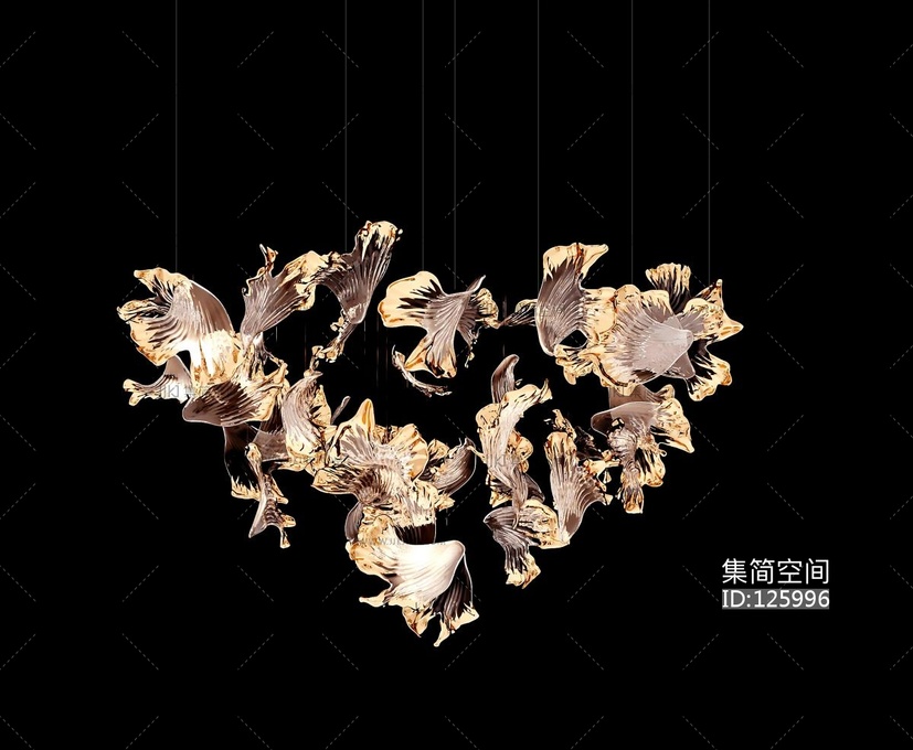 现代玻璃花瓣树叶装饰吊灯 3d模型下载 [模型ID:125996]