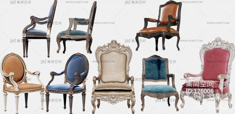 欧式法式美式布艺休闲椅组合 3d模型下载 [模型ID:126006]