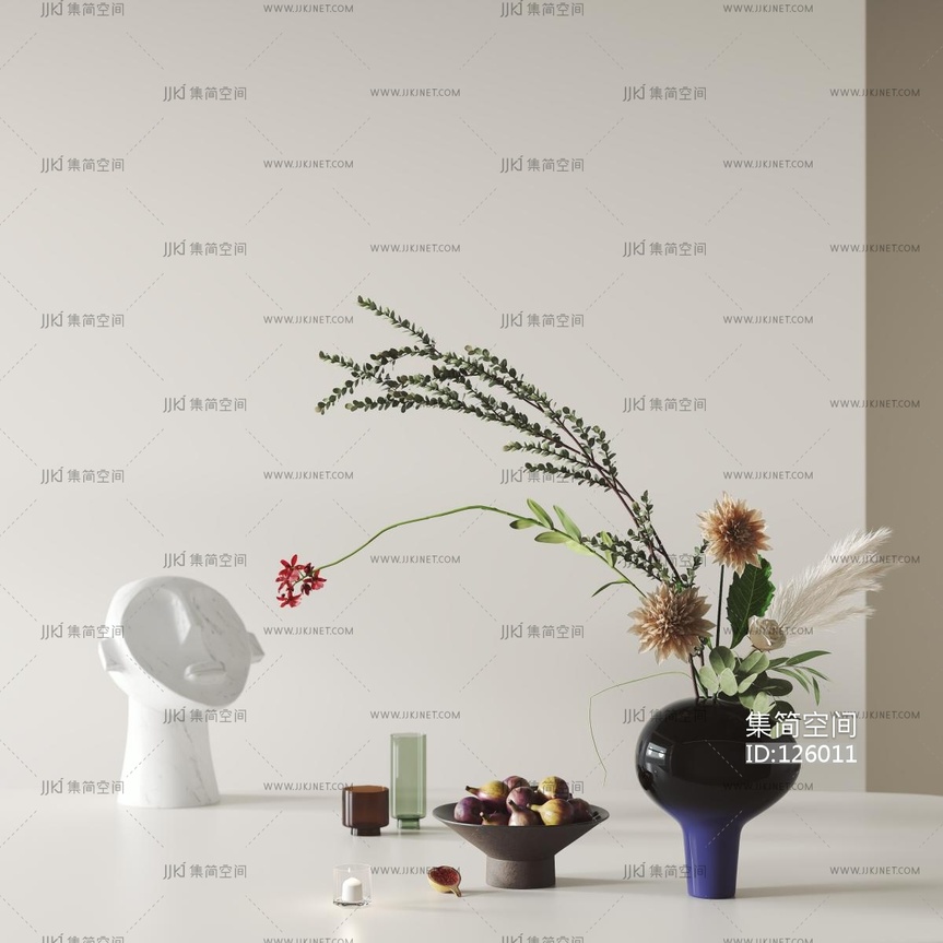现代饰品摆件人物雕塑花瓶果盘蜡烛 3d模型下载 [模型ID:126011]
