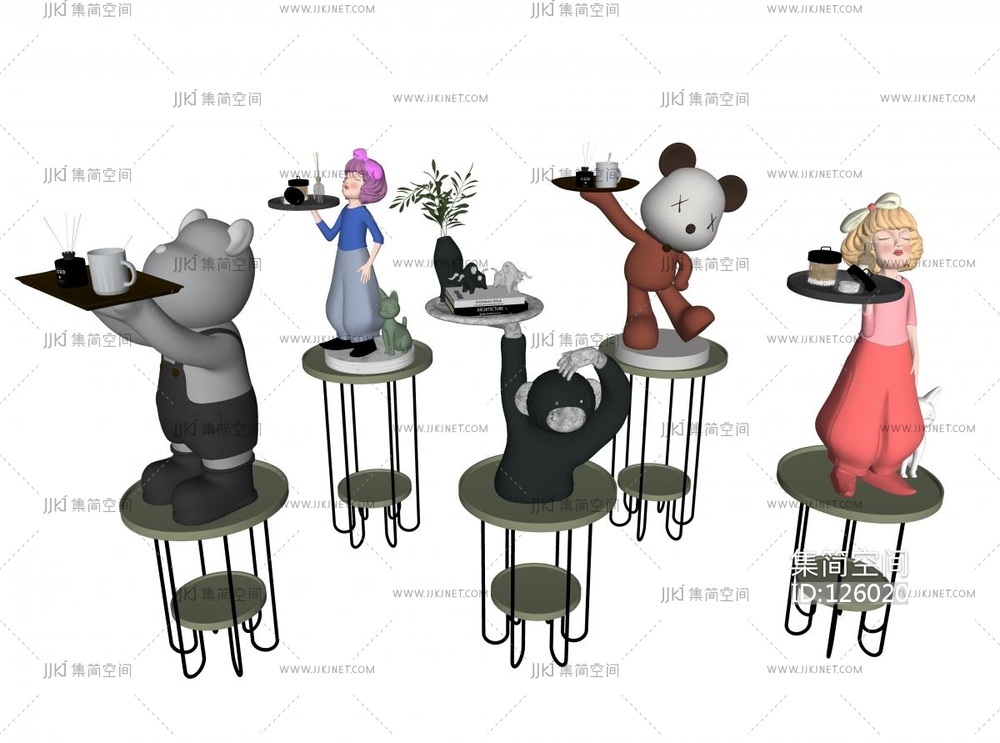 现代狗熊米老鼠,猴子人物雕塑饰品摆件 su草图模型下载 [模型ID:126020]
