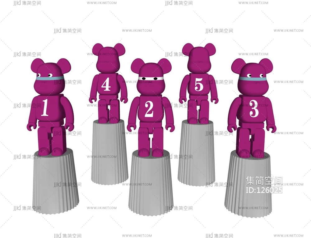 现代公仔暴力熊潮玩雕塑饰品摆件 su草图模型下载 [模型ID:126025]