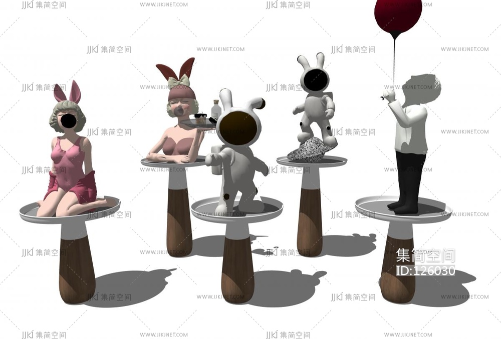 现代兔女郎太空兔人物雕塑饰品摆件 su草图模型下载 [模型ID:126030]