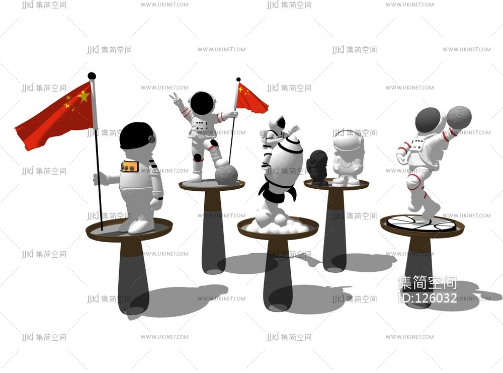 现代太空人宇航员航天员中国国旗雕塑摆件 su草图模型下载 [模型ID:126032]