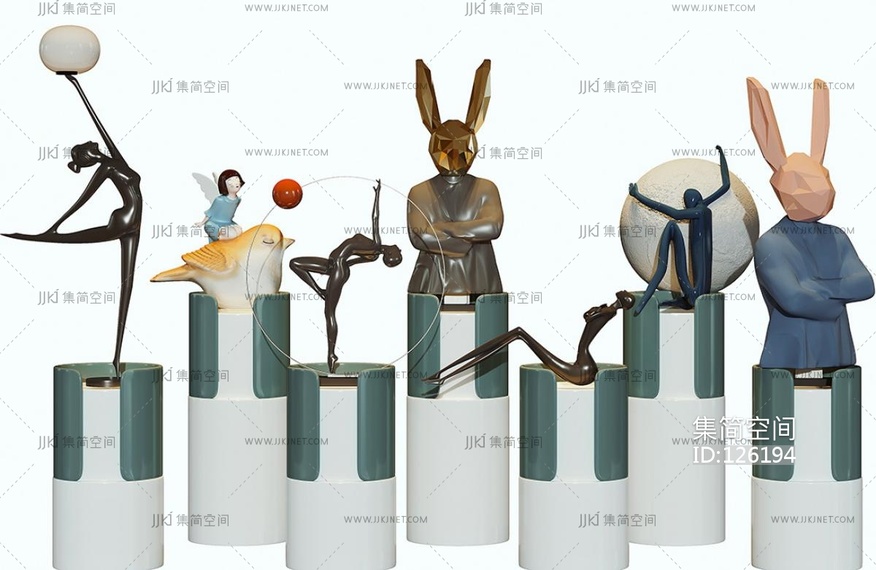现代芭蕾人物兔子潮玩雕塑饰品摆件 3d模型下载 [模型ID:126194]
