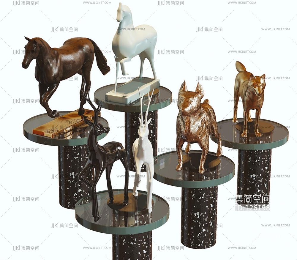 现代骏马狼鹿动物雕塑搜摆件 3d模型下载 [模型ID:126198]