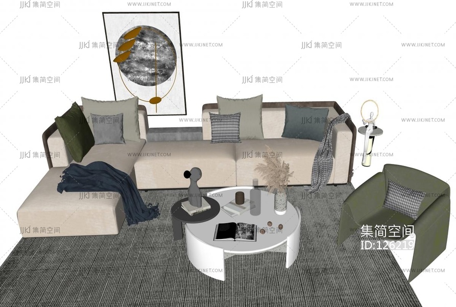 现代沙发茶几组合 su草图模型下载 [模型ID:126219]